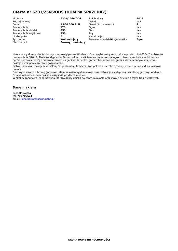Oferta nr 6201/2566/ODS (DOM na SPRZEDAŻ)