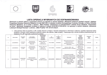 LISTA OPERAGJI WYBRANYGH DO DOFINANSOWANIA