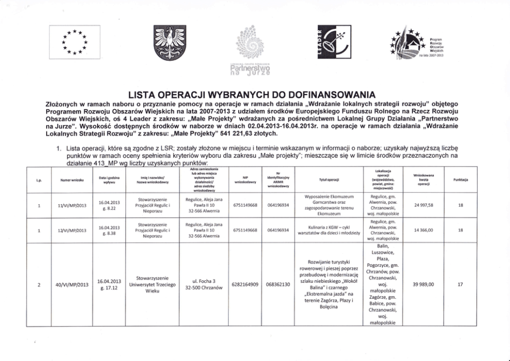 Lokalnych strategii Rozwoju'' z zakresu: ,,Małe Projekty'' 541 221,63 złotych'
