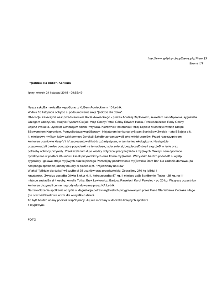 II, miejscowy my[liwy, który dziki pomocy Dyrekcji SzkoBy zorganizowaB akcj w[ród uczniów. Przed rozstrzygniciem