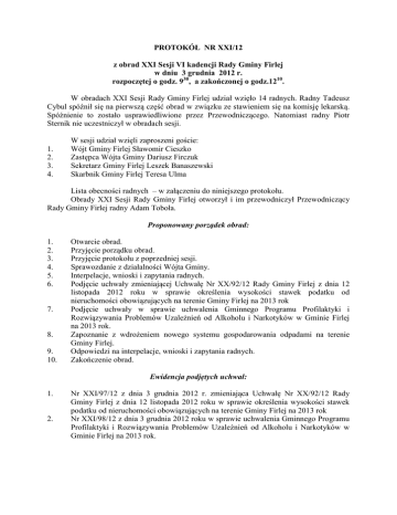PROTOKÓŁ NR XXI/12 z obrad XXI Sesji VI kadencji Rady Gminy