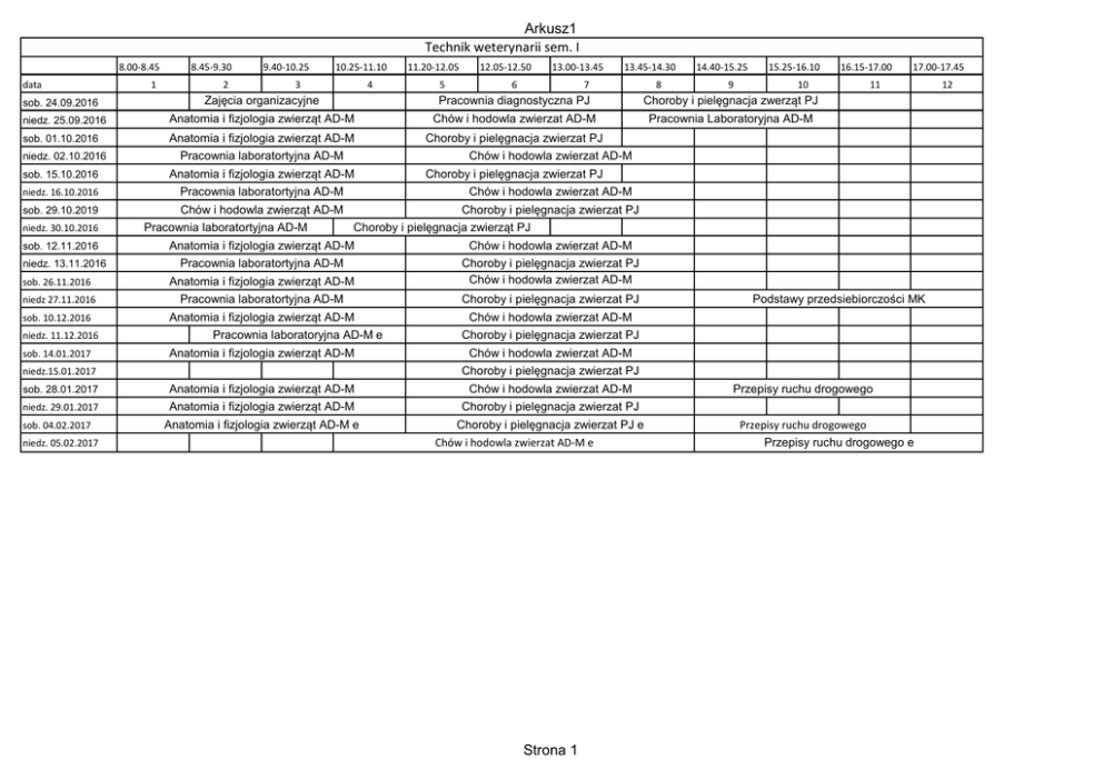Arkusz1 Technik weterynarii sem. I Strona 1