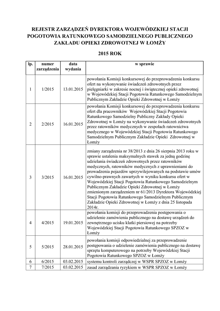 rejestr zarządzeń dyrektora wojewódzkiej stacji pogotowia