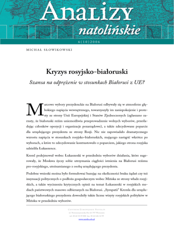 1 6(10)2006 MICHAŁ SŁOWIKOWSKI Kryzys rosyjsko-białoruski Szansa na odprężenie w stosunkach Białorusi z UE? arcowe wybory prezydenckie na Białorusi odbywały się w atmosferze głę- M bokiego napięcia wewnętrznego, towarzyszyły im zaniepokojenie i protesty ze strony Unii Europejskiej i Stanów Zjednoczonych (zgłaszano za- rzuty, że białoruski reżim uniemożliwia przeprowadzenie wolnych wyborów, prześladując członków opozycji i organizacje pozarządowe), a także zdecydowane poparcie dla urzędującego prezydenta ze strony Rosji. Nic nie zapowiadało dramatycznego wzrostu napięcia w stosunkach rosyjsko-białoruskich, mającego nastąpić wkrótce po wyborach, a które to zdecydowanie kontrastowało z poparciem, jakiego strona rosyjska udzieliła Łukaszence. Kreml podejmował wobec Łukaszenki w przededniu wyborów działania, które sugerowały, że Moskwa życzy sobie utrzymania ciągłości istnienia na Białorusi reżimu pro-rosyjskiego, utożsamianego z osobą urzędującego prezydenta. Podobne wnioski można było formułować bazując na okoliczności braku żądań czy też insynuacji politycznych o podłożu gospodarczym wobec Mińska ze strony władz rosyjskich, a także wyciszeniu krytycznych opinii na temat Łukaszenki w rosyjskich mediach państwowych masowo odbieranych na Białorusi. „Sympatii” Kremla dla urzędującego białoruskiego prezydenta dowodziły także liczne wizyty rosyjskich polityków w Mińsku w przededniu wyborów. CENTRUM EUROPEJSKIE NATOLIN ul. Nowoursynowska 84, 02-797 Warszawa tel: 48 22 54 59 800· fax: 48 22 646 12 99 www.natolin.edu.pl 2 Decyzja Kremla o poparciu urzędującego białoruskiego prezydenta, jeśli skupić się na „kadrowym” i „geopolitycznym” aspekcie sprawy, wynikała z następującego założenia. Nacisk na Łukaszenkę by zrezygnował z uczestnictwa wyborach, byłby zgodny z oczekiwaniami partnerów unijnych, jednak jak podkreślano w analizach „Radia Wolna Europa/Radia Swoboda” – Białoruś Głosuje 2006: „Władimir Putin obawiał się »kolorowej rewolucji« podobnej do Stosunek władz tych, które rozegrały się w Ukrainie, Gruzji i Kirgistanie”. rosyjskich do marcowych Te demokratyczne rewolucje, jak pokazuje doświadczenie wyborów na Białorusi ostatnich lat, przyczyniały się nie tylko do zmiany reżimu politycznego we wspomnianych państwach, ale także przeformułowania ich polityki zagranicznej. Tę prawidłowość: był czytelnym sygnałem, że wszelkie dalsze dy- zmiana reżimu politycznego = zmiana polityki zagranicznej plomatyczne próby po- już dość dawno zdiagnozowano w ramach teorii stosunków zyskania Moskwy dla międzynarodowych. Warto jednak dodać, że „kolorowe re- sprawy demokratyzacji wolucje”, stanowiące radykalną zmianę reżimu politycznego białoruskiego reżimu pociągają za sobą równie głębokie przeformułowania w sfe- mijają się z celem. rze polityki zagranicznej. Ta reguła została natomiast zaobserwowana na przykładzie państw Europy Środkowo-Wschodniej w następstwie „Jesieni Ludów”. Z tego też względu Kreml był zdecydowany zabezpieczyć się przed powtórzeniem się ukraińskiego scenariusza wyborczego, min. zapewniając Białorusi stałe i tanie dostawy surowców energetycznych. Żaden inny kandydat do fotela prezydenckie, za wyjątkiem Łukaszenki nie spełniał równocześnie dwóch fundamentalnych z punktu widzenia Rosji wymogów. Urzędujący prezydent cieszył się wysoką społeczną popularnością (według badań przeprowadzonych przez instytut „Gallup/Baltic Surveys” w styczniu 2006 roku, Łukaszenko cieszył się zaufaniem 55% Białorusinów) i był lojalny wobec Moskwy. Zwycięstwo Łukaszenki wymagało ze strony Moskwy minimalnego zaangażowania i było wysoce prawdopodobne, poparcie dla jego osoby nie groziło utratą prestiżu osobie Putina i Rosji. *** Kryzys, który został zainicjowany przez stronę rosyjską po wyborach prezydenckich można natomiast rozpatrywać dwojako. CENTRUM EUROPEJSKIE NATOLIN ul. Nowoursynowska 84, 02-797 Warszawa tel: 48 22 54 59 800· fax: 48 22 646 12 99 www.natolin.edu.pl 3 1. Po pierwsze w kategorii ekonomiczno-pragmatycznej, w ramach której zmiana zasad dostaw surowców energetycznych miała być ostrzeżeniem pod adresem Łukaszenki by ten zaniechał ekonomicznej polityki protekcjonistycznej, tj. ograniczania swobody działania kapitału rosyjskiego na Białorusi. W grę wchodzić mogła także chęć wyeliminowania zjawiska „pasożytowania” Mińska na dostawach tanich rosyjskich surowców energetycznych. Podobne podejście pozostaje w logicznej zgodzie z rosyjską polityką ekonomizacji stosunków międzynarodowych, której początek zbiega się z ukraińską „Pomarańczową Rewolucją”. Kreml dokonał przewartościowania dotychczasowej zasady subsydiowania reżimów politycznych „bliskiej zagranicy”, które nie odwzajemniają się Rosji żadnymi korzyściami (np. otwieraniem rynków wewnętrznych, pozwoleniami na zakup przedsiębiorstw), a ich lojalność polityczna i tak jest kwestią wątpliwą. Coraz częściej stan stosunków pomiędzy Rosją a byłymi republikami radzieckimi diagnozuje się w oparciu o cenę metra sześciennego gazu ziemnego. 2. Po drugie w kategorii polityczno-prognostycznej, w ramach której nie można wykluczyć scenariusza, w myśl którego poparcie wyborcze dla Łukaszenki było ostatnią przysługą, jaką wyświadczył Kreml białoruskiemu liderowi. W marcu bieżącego roku, zwycięstwo Łukaszenki, a nie któregoś innego kandydata do fotela prezydenckiego wydawało się być gwarancją, że Białoruś pozostanie w orbicie wpływów Rosji. Radykalna zmiana polityki energetycznej wobec Białorusi mogła mieć jednak na celu zasygnalizowanie białoruskiej elicie politycznej, że czas pomyśleć o zmianie na szczytach władzy. Udzielenie poparcia Łukaszence, w połączeniu z sygnałem ostrzegawczym w postaci zmiany zasad dostaw surowc