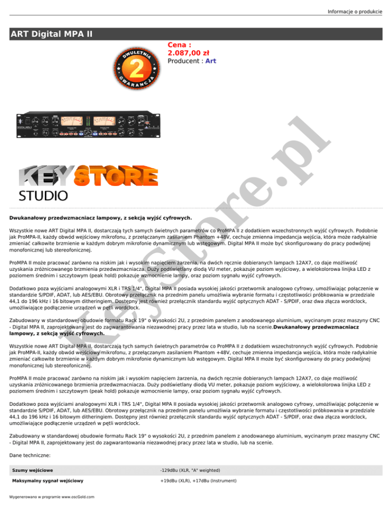 Wszystkie nowe ART Digital MPA II, dostarczają tych samych świetnych parametrów co ProMPA II z dodatkiem wszechstronnych wyjść cyfrowych. Podobnie