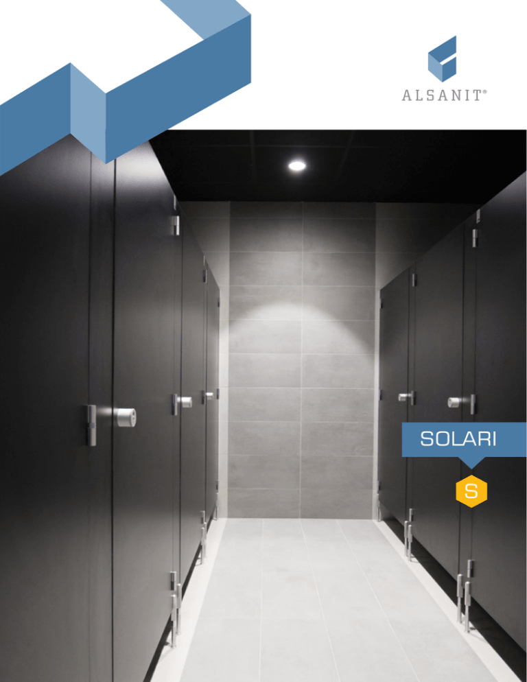 SOLARI S SOLARI S Opis systemu System SOLARI został stworzony na bazie bardzo trwałego systemu ERIDANI z myślą o użytkownikach, dla których liczą się funkcjonalne i ekonomiczne rozwiązania. Aby spełnić te kryteria rozszerzyliśmy asortyment systemu SOLARI o płytę HPL. W miejscach, gdzie jest to możliwe, profile zastąpiliśmy: w płytach LPW – obrzeżem ABS a w płytach HPL – odpowiednim ukształtowaniem krawędzi. System przygotowany jest do szybkiego i łatwego samodzielnego montażu na podstawie dołączonej instrukcji. Charakterystyka systemu: Pobierz rysunki CAD ze strony: www.iso.alsanit.pl •najkrótsze terminy realizacji •okucia systemowe ALSANIT z aluminium i poliamidu •krawędzie płyt LPW oklejane taśmą PCV a płyt HPL frezowane •do pomieszczeń suchych (płyta wiórowa) i mokrych (HPL) Paleta kolorów, szczegółowe informacje oraz instrukcje montażu: www.alsanit.pl Estetyczne wykończenie płyt, anodowane profile aluminiowe mocujące kabiny do ścian stałych oraz okucia wykonane z aluminium nadają systemowi minimalistyczny wygląd. System dostępny dla płyt: LPW HPL 18 mm 10 mm 28 mm 12 mm Okucia Wszystkie okucia w systemie SOLARI zostały zaprojektowane i produkowane są w Polsce przez firmę ALSANIT. Tym samym zapewniają najwyższą jakość wykonania a przeprowadzane testy wytrzymałościowe elementów gwarantują wieloletnią niezawodność. Zawiasy Charakterystyczne dla wyrobów Alsanit – bardzo estetyczne, aluminiowe, z funkcją samodomykania, montowane do wąskiej krawędzi płyty. Dzięki odpowiedniemu doborowi materiałów pierwsze smarowanie powinno być przeprowadzone po kilku latach użytkowania. 95 •trwałość: 200 000 cykli otwarte / zamknięte •samodomykanie grawitacyjne 5 1 35 Zamkopochwyty Klasyczne zamkopochwyty ALSANIT. Idealne połączenie zamka ze wskaźnikiem zajętości oraz pochwytu w jednym elemencie. Nie wymagają konserwacji. Możliwość awaryjnego otwarcia kabiny z zewnątrz za pomocą np. monety. Aluminiowy korpus nawiązuje do profili systemowych. 50 •uniwersalny do drzwi L / P •kąt obrotu rygla 180° 50 40 •zakres regulacji +/– 20 mm 170 Wsporniki Regulowane o wysokości 190 mm dają możliwość łatwego poziomowania ścianek. Rdzeń ze stali nierdzewnej zapewnia wieloletnie użytkowanie bez konieczności zabiegów konserwacyjnych. Estetyczna osłona aluminiowa. Trwałość montażu bez konieczności wiercenia kilku otworów na jeden wspornik. 2 0 SOLARI sprawdzone rozwiązania System zrealizowano między innymi w: Zastosowanie: •Międzynarodowe Centrum Targowo-Kongresowe EXPO w Krakowie •PESA S.A. w Bydgoszczy •Centrum Nanotechnologii Politechniki Gdańskiej •Centrum Wystawienniczo Kongresowe w Opolu •Biurowiec ORANGE w Warszawie •HOTEL FOCUS Chorzów •Stadion Żużlowy w Ostrowie Wielkopolskim •Tauron Ciepło – Dąbrowa Górnicza •Zakład Produkcji Okien EKO-OKNA, Kornice •hale sportowe •baseny •szpitale •dworce •centra handlowe Poznaj pełną paletę kabin ALSANIT: AQUARI ERIDANI SOLARI PERSEI TAUCETI LALANDE A E S P T L okucia z aluminium każda krawędź oprawiona w profil okucia z aluminium i poliamidu ALSANIT ul. Wieleńska 2, 64-98O Trzcianka, tel./fax 67 253 23 60, [email protected], www.alsanit.pl okucia ze stali nierdzewnej okucia z poliamidu dowolna kombinacja okuć