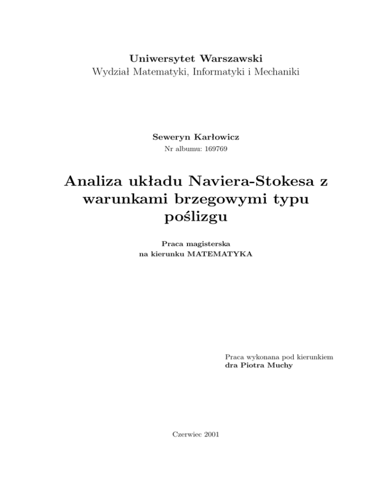 Analiza układu Naviera-Stokesa z warunkami brzegowymi