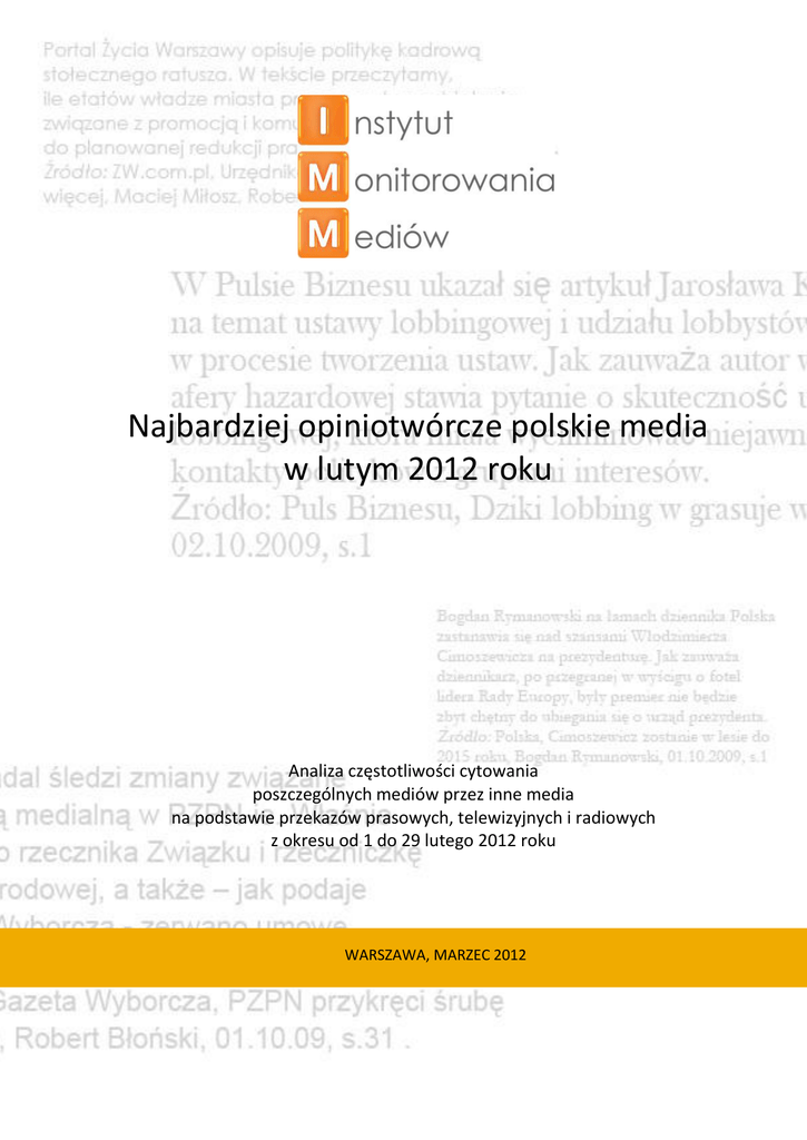 Najbardziej opiniotwórcze polskie media w lutym 2012 roku