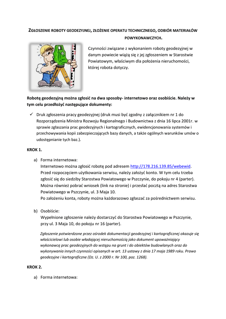 Zgłoszenie roboty geodezyjnej, złożenie operatu