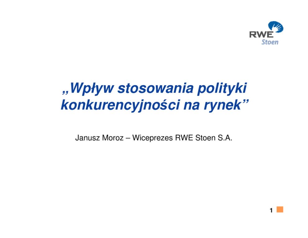 „Wpływ stosowania polityki konkurencyjności na rynek” Janusz Moroz – Wiceprezes RWE Stoen S.A. 1 Charakterystyka rynku Brytyjskiego Najbardziej rozwinięty rynek w Europie. Największy europejski rynek gazu i drugi co do wielkości rynek energetyczny. Uwolnienie rynku nastąpiło w 1998 roku. Ponad połowa gospodarstw przynajmniej raz zmieniła sprzedawcę. Zmiana sprzedawcy możliwa jest online i trwa zaledwie 28 dni. Nadal najważniejszym kryterium wyboru pozostaje cena (90%), dal 7% - jakość usług, a dla pozostałych 3 % - informacje o udziale energii ze źródeł odnawialnych w oferowanej energii. 2 Mapa dostawców na rynku brytyjskim Scottish Power Scottish Hydro Northern Norweb Yorkshire Manweb Midlands SWALEC Southern Seeboard SWEB 3 Rynek brytyjski jest zdominowany przez 6 firm zintegrowanych pionowo Ponad 30 wytwórców RWEn RWEn SSE EdF EON BG Udziały w rynku (moc wytwórcza) 2006 SP Centrica, 5% EDF, 7% 1 TSO (National Grid) Jeden TSO dla gazu i energii elektrycznej – National Grid Wielka „6” to około British Energy, 15% EON, 14% Drax, 5% International Power, 4% Teeside, 3% 50% RWE npower, 15% Others, 13% Scottish Power, 8% SSE, 11% 7 DSO, którzy działają na 14 obszarach Udziały w rynku (klienci indywidualni) TWh 2007 7 głównych dostawców Scot Power , 12% Zużycie 350TWh Brak graczy niszowych 235 TWh Klienci Instytucjonalni Centrica, 21% Sonstige, EDF Energy, 14% < 1% 115 TWh Gospodarstwa domowe Powergen / E.ON UK, 19% RWE npower, 16% SSE, 18% Źródło: DBERR2007/Ofgem, Cornwall Associates 4 Struktura własnościowa elektroenergetyki w Polsce Wytwarzanie sprywatyzowano tylko 25% Obrót / Dystrybucja Przesył OSP (PSE-Operator SA) od 1.1.2007 100% własność elektrowni systemowych (*) Skarbu Państwa – BK PAK / Elektrim – StK Polaniec / Electrabel Wcześniej w grupie kapitałowej PSE (w grupie poza OSP: – StK Rybnik / EdF wytwarzanie, obrót, telekomunikacja, itp.) – StK Skawina / CEZ 60% SP tylko ok. 13% rynku 100% SP sprzedaży energii należy do spółek sprywatyzowanych – GZE / Vattenfall Distribution – RWE Stoen ok. 86% SP Państwo jako właściciel i Regulator Największe wyzwanie: inwestycje (*) odpowiada ok. 20% udziału w całym sektorze wytwórczym w Polsce; Elektrociepłownie w przeważającej części sprywatyzowane (udział wszystkich elektrociepłowni w segmencie wytwarzania wynosi ok. 10-12%; pozostałe to elektrownie niezależne i przemysłowe, OZE, etc.) 5 Rynek energii w Polsce ENERGA ENEA PGE ENERGA KW-Gr. Dolna Odra KW Ostrołęka ENEA RWE PSE (ohne TSO) BOT KW Kozienice EnergiaPro PKE KW Stalowa Wola VATT. 2006 ENION TAURON PGE TAURON ENERGA ENEA Produkcja TWh 52,4 21,1 3,6 11,8 Sprzedaż TWh 33,7 33,8 21,1 17,9 Produkcja - sprzedaż TWh 18,7 -12,7 -17,5 -6,1 Liczba klientów Mio. 4,9 3,9 2,7 2,2 Zatrudnienie Tsd. 40 19,4 8,8 7,9 6 Źródła: ARE 07/2007, URE 05/2007, Raporty firm, własne obliczenia Rozwój konkurencyjnego rynku brytyjskiego; podróż od monopolu do dynamicznej konkurencji 1997 - 2001 2001 - 2003 2003 - 2005 2005 do dziś Monopol Reformy Kryzys Zmiana kierunku Dynamiczna konkurencja Relacje z klientami Konkurencja Pricing Struktura rynku Regulacja od 1997 Zmniejszenie regulacji i wzrost konkurencji Powstanie nowych firm Stworzenie dużych graczy poprzez konsolidacje Monopol cenowy Ustalanie cen na bazie kosztów Wycena długoterminowa Konkurencja przez cenę Cena, kanały i konkurencja produktowa Rozwój Wzmocnienie 7 Zmiana sprzedawcy na rynku brytyjskim od 1997 1997 - 2001 2001 - 2003 2003 - 2005 Monopol Reformy Kryzys Zmiana kierunku 2005 do dziś Dynamiczna konkurencja Zmiana sprzedawcy (przemysł) 800 Ilość zmian sprzedawców gazu i energii elektrycznej wzrasta. Od momentu uwolnienia rynku, 80 % klientów przynajmniej raz zmieniło dostawcę. Na zmianę sprzedawcy zdecydowało się 16 % klientów w 2005 roku oraz 18 % w 2006 (Ofgem) Account changes per mnth (‘000s 700 600 500 400 300 200 2000 2001 2002 2003 2004 2005 2006 2007 Accounts 1Źródło: Ofgem – Kwiecień 2008 8 Liberalizacja rynku energii w Polsce Faktyczne otwarcie rynku daleko poniżej teoretycznego stopnia liberalizacji 100% 90% 82 TWh 80% 70% 53 TWh 60% 50% 36 TWh 40% 30% 20% 28,5 TWh 29 TWh 5,7 TWh 6,1 TWh 5,2 TWh 6,2 TWh 1999 2000 2001 2002 37 TWh 23 TWh 9,5 TWh 10% 0% 4,2 TWh 9-12/1998 II. Etap I. etap > 500 GWh > 100 GWh Rynek zliberalizowany; III. etap > 40 GWh 7,2 TWh 2003 IV. etap > 10 GWh Teoretyczne otwarcie rynku; 9,8 TWh 10,3 TWh 1-6/2004 -> 7/2004 V. etap > 1 GWh VI. etap VII. etap wszyscy poza pełne gosp. domo. otwarcie rynku Źródło: URE -> 7/2007 Zakładana łączna sprzedaż 103 TWh/a Regulacja restrykcyjna (taryfy dla klientów uprawnionych poniżej kosztów) Subsydiowanie skrośne pomiędzy grupami klientów Brak standardów w obszarze zamiany klienta 9 Kanały, produkty i marka są bardzo ważne na konkurencyjnym rynku brytyjskim od 1997 1997 - 2001 2001 - 2003 2003 - 2005 2005 do dziś Monopol Reformy Kryzys Zmiana kierunku Dynamiczna Konkurencja Całkowita Sprzedaż poprzez kanały Type/Week Produkty i usługi Zdalny (Internet,, Telemarketing, Sprzedaż poprzez usługi) Core (podstawa) +85% Osobiście (Events, Door-toDoor) Gaz Energia elektryczna Dualne dostawy Nowe metody płatności Green (zielona) ‘Juice’ National Trust partner-ship Usługi Innowacje ‘Gas Guardian’ ‘Tracker’ product Serwisnpower hometeam Energia słoneczna Pompy ciepła Przyszłość Energia wiatrowa DCHP1 CO2 management +34% 10 000 15 000 20 000 25 000 0 5,0005 00010,000 15,000 20,000 25,000 Gross number of sales/week 2007 1 2005 Domestic Combined Heat & Power 10 Czynniki wpływające na konkurencyjność Struktura własnościowa / prywatyzacja Liczba graczy na rynku Regulacja cenowa Płynność rynku, marże w łańcuchu dostaw Giełda wymiany energii, przejrzystość transferów Instrumenty sprzedażowe, systemy (łatwość zmiany sprzedawcy) Produkty, serwis, innowacje, czysta energia 11