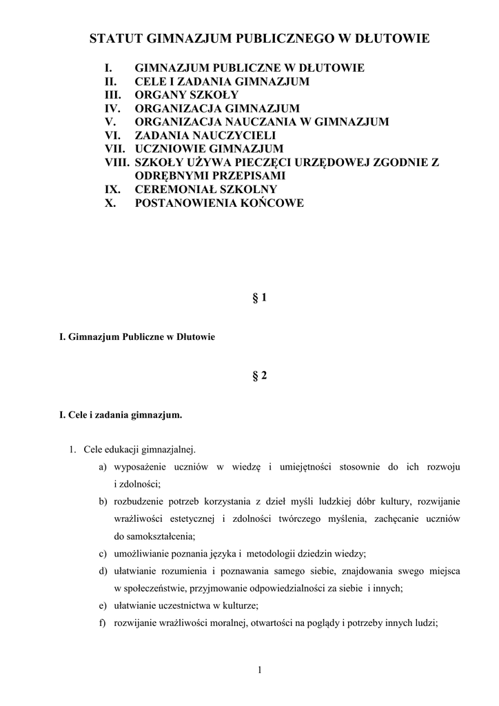 Statut Gimnazjum w Dlutowie