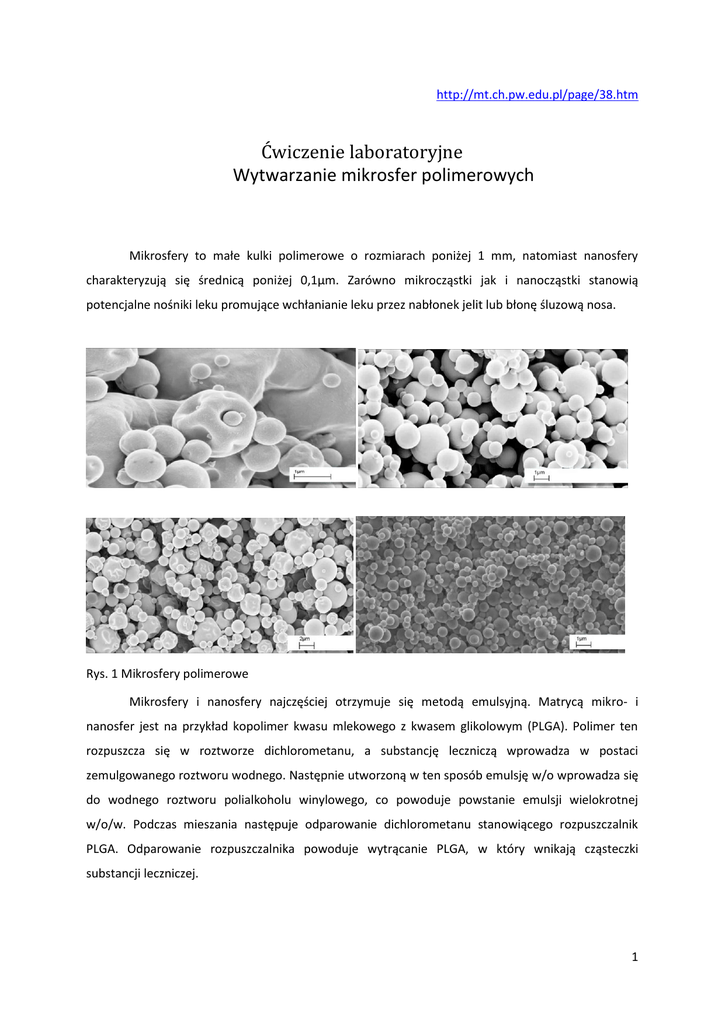 Ćwiczenie laboratoryjne Wytwarzanie mikrosfer polimerowych
