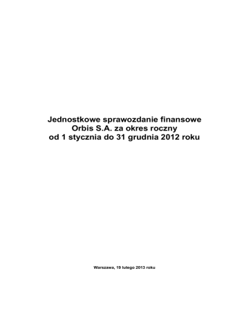 Jednostkowe sprawozdanie finansowe Orbis SA za okres roczny od