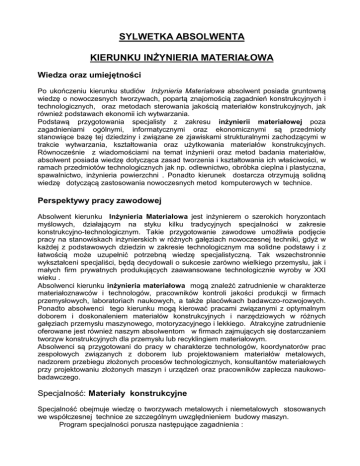sylwetka absolwenta - Instytut Inżynierii Materiałowej