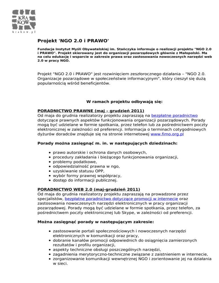 Projekt `NGO 2.0 i PRAWO`