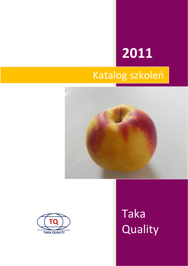 2011 Katalog szkoleń TQ TAKA QUALITY Taka Quality Katalog szkoleń 2011 Pełnomocnik ds. zarządzania bezpieczeństwem żywności GRUPA DOCELOWA Szkolenie przeznaczone jest dla kandydatów lub osób powołanych na stanowisko Pełnomocnika ds. zarządzania bezpieczeństwem żywności oraz dla osób, które są zainteresowane uzyskaniem nowych kwalifikacji zawodowych. CEL SZKOLENIA Ugruntowanie wiedzy z zakresu bezpieczeństwa żywności. Zdobycie umiejętności i wiedzy niezbędnej w wypełnianiu funkcji Pełnomocnik ds. zarządzania bezpieczeństwem żywności w organizacji. RAMOWY PROGRAM SZKOLENIA 1. Wprowadzenie 2. Pełnomocnik ds. bezpieczeństwa zdrowotnego żywności – zakres obowiązków, uprawnień i odpowiedzialności 3. Wymagania prawne w Polsce i UE w zakresie bezpieczeństwa i higieny żywności. 4. Praktyka wdrażania wymagań systemu HACCP 5. Dokumentacja i dokumentowanie systemu HACCP 6. Systemowe podejście do wdrażania wymagań systemu HACCP 7. Weryfikacja systemu HACCP 8. Przegląd zarządzania 9. Ciągłe doskonalenie 10. Przegląd szkolenia i zakończenie FORMA I METODOLOGIA SZKOLENIA Szkolenie prowadzone jest w formie wykładów oraz zajęć warsztatowych w oparciu o literaturę i materiały praktyczne z wykorzystaniem środków multimedialnych. FORMA POŚWIADCZENIA ODBYCIA SZKOLENIA Certyfikat CZAS TRWANIA 3 dni (21 godz.) MINIMALNE WYMAGANIA Wiedza z zakresu systemu HACCP Podstawowa wiedza z zakresu normy ISO 22000 MIEJSCE Sala szkoleniowa w centrum Łodzi CENA Informacja udzielana w dni robocze ciągu 24h od złożenia zapytania na adres: [email protected] Zniżki negocjowane indywidualnie z każdym klientem SZCZEGÓŁÓWE INFORMACJE [email protected] tel. (42) 650-91-54 lub 602-344-830 Zapraszamy TQ TAKA QUALITY Ul. Gruntowa 3A, 91-225 Łódź Tel. (42) 650-91-54 NIP 947-180-27-61