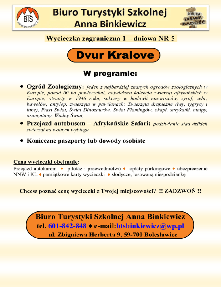 Dvur Kralove - Strona główna - Biuro Turystyki Szkolnej Binkiewicz