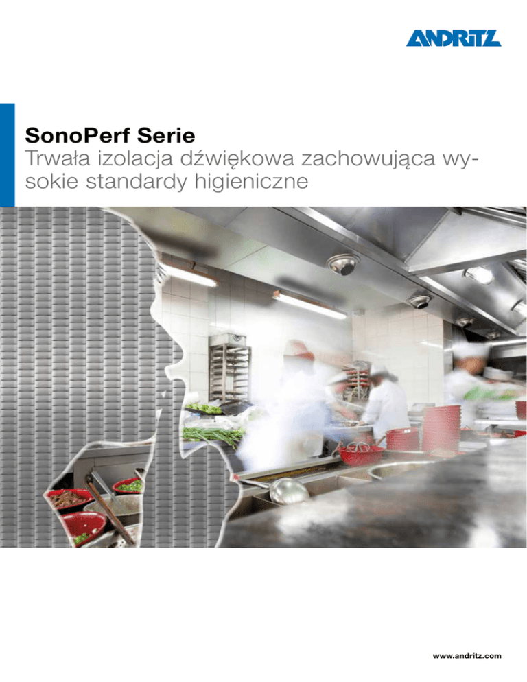 SonoPerf Serie Trwała izolacja dźwiękowa zachowująca wysokie standardy higieniczne www.andritz.com Ochrona przed głośnym hałasem w miejscach o wysokich wymaganiach higienicznych Temat zawsze aktualny Tak jak dawniej hałas w miejscu pracy jest wielkim problemem w wielu dziedzinach produkcji. Szacuje się, że w roku 2012 w Niemczech 5,5 mil. osób pracowało w miejscach o podwyższonym poziomie hałasu. Natomiast szacunki ogólnoeuropejskie mówią, że w głośnym środowisku pracuje, przynajmniej częściowo, co piąty pracownik. Wyciszyć, zachowując higienę Trudne czyszczenie Czynnik zdrowia W pomieszczeniach produkcyjnych, w któ- Normalne materiały tłumiące można czy- Wysoki poziom hałasu, zła akustyka prze- rych higiena gra dużą rolę, normalne mate- ścić tylko w sposób skomplikowany – nie strzenna: Hałas – niepożądane słyszal- riały tłumiące dźwięk mogą być stosowane nadają się do normalnego czyszczenia ne dźwięki, które mogą prowadzić do tylko warunkowo. Aby wyeliminować two- pod ciśnieniem lub w myjni. Większość uszczerbku na zdrowiu. Na przeszkadza- rzenie się zarodników i pleśni, muszą one tych materiałów nie jest także odporna na jące dźwięki ciało reaguje automatycznie, być opakowane w folię. Jednak pod wpły- długotrwałe codzienne czyszczenie ługiem wydzielając hormony stresu. Wynikiem jest wem środków czyszczących i słońca staje lub kwasami – powstają w nich drobne podwyższone tętno, wyższe ciśnienie krwi się ona porowatą, a więc nieodpowiednią. pęknięcia dające wstęp dla zarodników i i długotrwałe pogorszenie słuchu. pleśni. Działanie hałasu na pracowników ▲Przykład głośnego środowiska roboczego o podwyższonych wymogach higienicznych ■ Stres ■ Wyższe ciśnienie krwi ■ Podwyższone tętno ■ Zakłócenia słuchu ■ Mniejsza zdolność koncentracji ■ Niższa wydajność SonoPerf – długotrwała absorpcja hałasu przy wysokich wymogach higienicznych i akustycznych SonoPerf oferuje jako jedyny wyrób higieniczny i niepalny, który zapewnia długotrwałą ochronę przed hałasem w sterylnym środowisku. Produkcja bez zastosowania włókien nie daje, jak udowodniono, żadnych możliwości rozwoju dla zarodników. Nasi eksperci pomogą Wam jedynie w 5 krokach osiągnąć spokojne i zdrowe środowisko pracy. Zalety SonoPerf Serie ■ Higieniczna izolacja dźwiękowa bez włókien ■ Bez wełny mineralnej, ▲SonoPerf Serie 300 5 kroków do spokojnego środowiska pracy pianki czy folii! ■ Niepalna (Klasa A1) ■ Bardzo długa żywotność w porównaniu z normalnymi izolacjami dźwiękowymi ■ Łatwe czyszczenie za pomocą zwykłych środków ■ Odporna na kwasy i zasady ■ Materiały do recyklingu ▲Schematyczne przedstawienie absorpcji 1 2 3 4 5 Pomiary akustyczne Stwierdzenie potrzeb Wybór wariantu produktu Montaż Kontrola skuteczności hałasu przez SonoPerf Higieniczna ochrona dźwiękowa Łatwe czyszczenie To jest właściwe rozwiązanie SonoPerf to pochłaniacz hałasu, który Nasze rozwiązania poprawiające akustykę SonoPerf istnieje w kilku wariantach. Czy oferuje optymalne rozwiązania w każdym montowane są w ten sposób, aby zacho- to jako izolacja stropu lub ścian, czy też zakresie stosowania. Hałas wyciszany jest wana została możliwość codziennego czysz- jako optymalna osłona maszyn – SonoPerf jedynie za pomocą akustycznej blachy, czenia bez wyższych nakładów pracy. Inaczej w każdym swym wariancie jest skutecz- zmniejszając stres i dając spokojniejsze i niż w przypadku normalnych systemów izo- nym rozwiązaniem chroniącym przed ha- zdrowsze środowisko pracy przy równo- lacji dźwiękowych SonoPerf daje możliwość łasem. Nasi eksperci od akustyki doradzą czesnym respektowaniu wymogów higie- stosowania istniejących urządzeń czyszczą- Wam chętnie i szczegółowo oraz przed- ny. cych, takich jak myjnia czy myjnia transporte- stawią odpowiednie warianty rozwiązań rów. SonoPerf jest odporny na kwasy, zasady tych problemów w Waszej firmie. i wysokie temperatury. SonoPerf Serie Odpowiednie rozwiązanie dla Waszych potrzeb SonoPerf Serie 100 SonoPerf Serie 200 SonoPerf Serie 300 SonoPerf Serie 400 Kompetencje w dziedzinie akustyki Doradztwo indywidualne Kompletne jednej ręki rozwiązania z Ochrona akustyczna to temat komplek- Każda produkcja jest inna – nie istnieje ANDRITZ Fiedler jest Waszym partne- sowy, który wymaga wielkiej wiedzy fa- standardowy system izolacji dźwiękowej! rem do indywidualnych rozwiązań izolacji chowej. Z tego powodu należy zacząć od Dlatego wykonujemy na miejscu dokładne dźwiękowej – kompletne rozwiązania z kontaktu z naszym ekspertem. Nasz eks- pomiary i zalecamy indywidualne rozwią- jednej ręki. Będziemy Wam towarzyszyć pert w dziedzinie akustyki ma wieloletnie zania. Pomiary kontrolne po instalacji po- od określenia problemu aż do zakończenia doświadczenie i jako znawca doradzi w winny potwierdzić skuteczność zastoso- montażu na drodze do cichszego, a tym każdej sprawie dotyczącej zmniejszenia wanych środków. samym zdrowszego, środowiska pracy. hałasu. ANDRITZ Fiedler GmbH Regensburg, Germany Tel.: +49 (941) 6401 0 ANDRITZ Fiedler Hradec Králové, Česká republika Tel.: +420 (495) 510 642 www.andritz-fiedler.cz [email protected] All data, information, statements, photographs and graphic illustrations made in this leaflet are without any obligation and raise no liabilities to or from part of any sales contracts of ANDRITZ AG or any affiliates for equipment and/or systems referred to herein. © ANDRITZ AG 2014. All rights reserved. No part of this copyrighted work may be reproduced, modified or distributed in any form or by any means, or stored in any database or retrieval system, without the prior written permission of ANDRITZ AG or its affiliates. Any such unauthorized use for any purpose is a violation of the relevant copyright laws. ANDRITZ AG, Statte