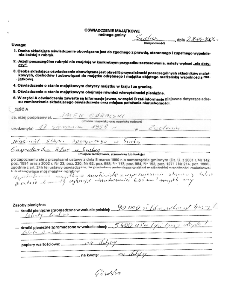 6. W czêœciA oœwiadczeniazawarte s¹ informacje jawne, w czêœciB zaœinformacje niejawne dotycz¹ce adresu zamieszkania sk³adaj¹cego oœwiadczenieoraz miejsca po³o¿enianieruchomoœci.