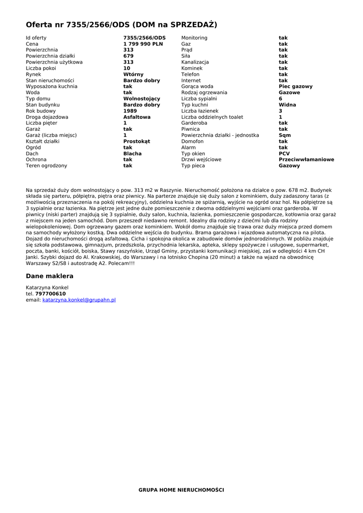 Oferta nr 7355/2566/ODS (DOM na SPRZEDAŻ)