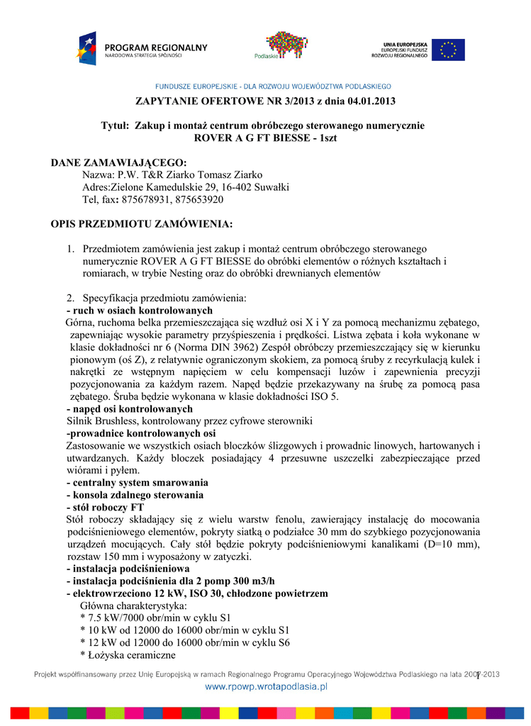 ZAPYTANIE OFERTOWE NR 3/2013 z dnia 04.01.2013
