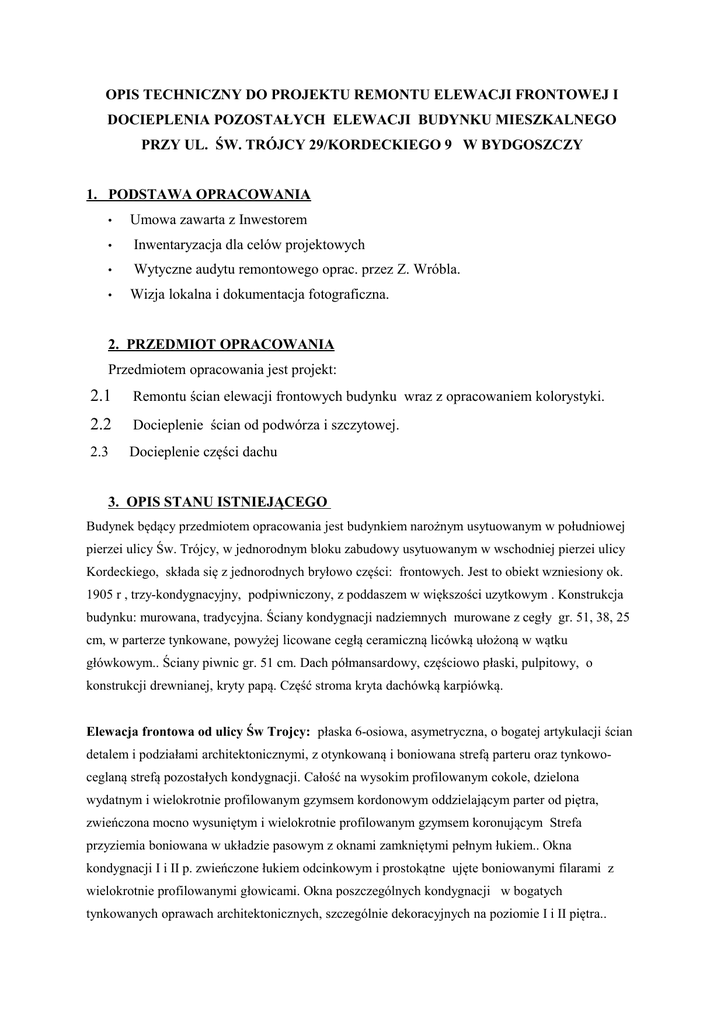 opis techniczny do projektu remontu elewacji budynku przy ul
