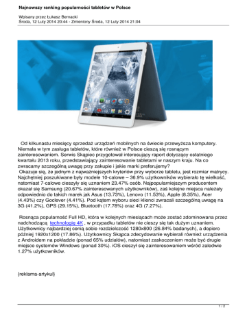 kwartału 2013 roku, przedstawiający zainteresowanie tabletami w naszym kraju. Na co