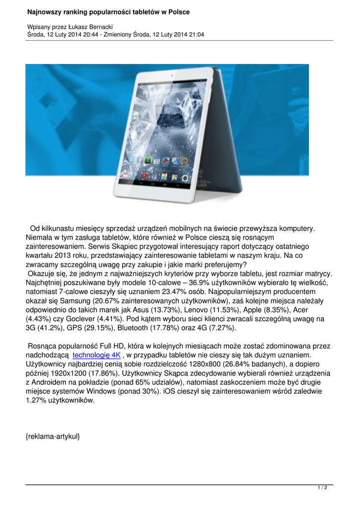 naszym zestawieniem tabletów – zaś wśród najchętniej kupowanych znalazły się m.in.