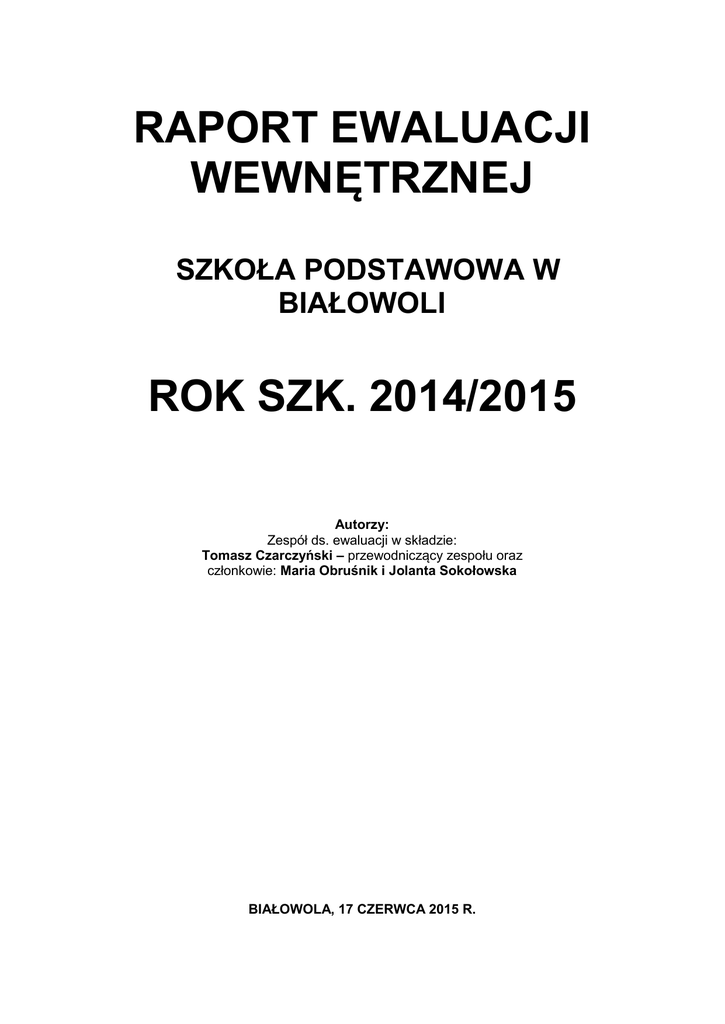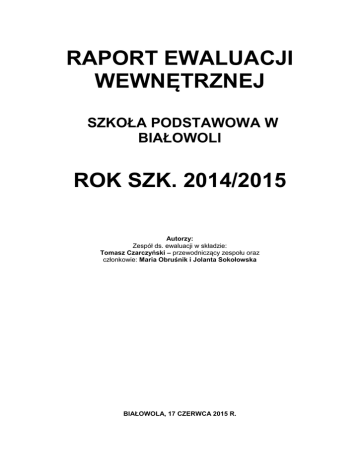 raport ewaluacji wewnętrznej rok szk. 2014/2015