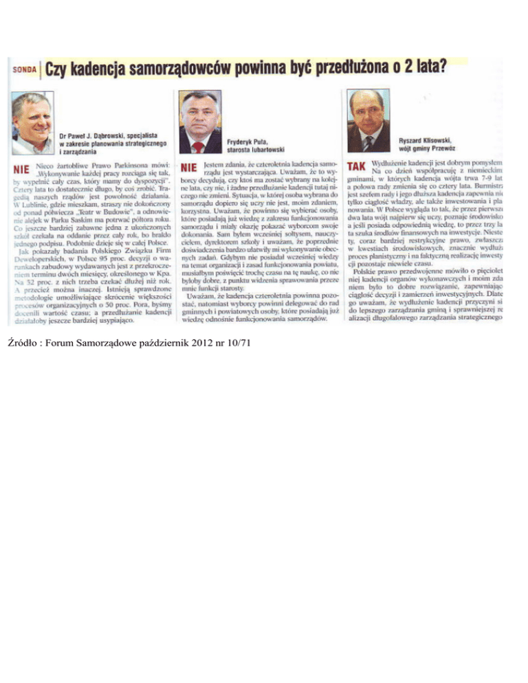 Źródło : Forum Samorządowe październik 2012 nr 10/71