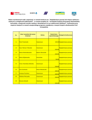 Wykaz wyróżnionych osób i organizacji w ramach konkursu pn