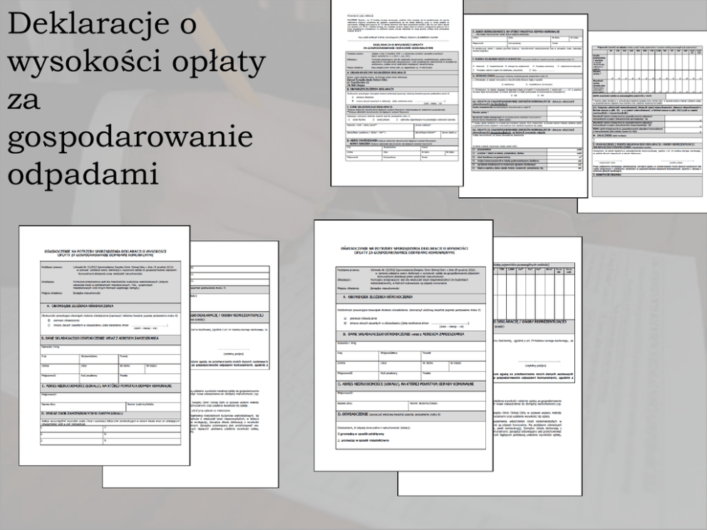 Deklaracje o wysokości opłaty za gospodarowanie odpadami ? SKĄD POBRAĆ FORMULARZE Deklaracje i oświadczenia dostępne są: W siedzibie Związku Gmin Dolnej Odry; W każdym Urzędzie Gminy; Na stronie internetowej www.zgdo.eu; Na stronie internetowej Twojej Gminy; U Twojego sołtysa; W spółdzielni lub u zarządcy nieruchomości Wraz z moją rodziną mieszkam w domu jednorodzinnym, w którym nie jest prowadzona działalność gospodarcza. 1) W takim przypadku wypełnij formularz „Deklaracja o wysokości opłaty za gospodarowanie odpadami komunalnymi” (bez żadnych załączników). 2) Zapoznaj się z treścią deklaracji. Wypełniasz części „B”, „C”, „D”, „E”, „F” „G” „G1” oraz „I” w następujący sposób: W części „B” zaznacz znakiem X opcję „pierwsza deklaracja” W części „C” zaznacz znakiem X opcję „osoba fizyczna”, następnie wpisz swoje imię i nazwisko, imiona rodziców oraz numer PESEL W części „D” wpisz swój adres zamieszkania. W części „E” wpisz dane Twojej nieruchomości, na której powstają odpady. Jeżeli jest to nieruchomości, na której mieszkasz, wpisz to samo co w części „D”. W części „F” zaznacz znakiem X opcję „własność”. Jeśli będziesz prowadził segregację śmieci, to w tym miejscu zaznacz znakiem X opcję „selektywny”. Wówczas zapłacisz mniejszą opłatę. Jeśli jednak zamierzasz wyrzucać śmieci zmieszane, zaznacz opcję „nieselektywny (zmieszany)” Jeśli zaznaczyłeś opcję „selektywny” i posiadasz kompostownik, zaznacz w tym miejscu opcję „tak”. W ten sposób informujesz Związek Gmin Dolnej Odry, że odpady biodegradowalne zagospodarujesz we własnym kompostowniku. Pamiętaj też, żeby wpisać pojemność kompostownika (np. 2m3) W sekcji „G1” wpisz liczbę mieszkańców faktycznie przebywających na Twojej nieruchomości. Pamiętaj, abyś wpisał faktyczną ilość mieszkańców (nie ma znaczenia, kto jest zameldowany). Jeśli ktoś z Twojej rodziny stale przebywa poza nieruchomością (np. mieszka w akademiku lub pracuje za granicą), wówczas taką osobę pomijasz. W tym miejscu wpisz stawkę opłaty. Jeśli zadeklarowałeś zbiórkę selektywną, stawka wynosi 9 zł. Jeśli zadeklarowałeś zbiórkę odpadów w sposób zmieszany, wówczas stawka wynosi 15 zł. W tym miejscu wpisz wysokość opłaty. Tzn. należy pomnożyć stawkę i ilość osób. Sekcję „G2” pomijasz w całości. Sekcję „G3” również pomijasz. Nie wypełniasz żadnych załączników. Sekcję „H” pomijasz. Wpisz miejscowość, datę oraz podpisz się. WAŻNE!!!!!!! WYPEŁNIONĄ DEKLARACJĘ DOSTARCZ DO SWOJEJ GMINY (MOŻE TO ZA CIEBIE ZROBIĆ NP. TWÓJ SOŁTYS) LUB DO SIEDZIBY ZWIĄZKU GMIN DOLNEJ ODRY DO DNIA 28 LUTEGO Wraz z moją rodziną mieszkam w domu jednorodzinnym, w którym prowadzimy sklep spożywczy 1) W takim przypadku wypełnij formularz „Deklaracja o wysokości opłaty za gospodarowanie odpadami komunalnymi” (bez żadnych załączników). 2) Zapoznaj się z treścią deklaracji. Wypełniasz części „B”, „C”, „D”, „E”, „F” „G”, „G1”, „G2”, „G3” oraz „I” w następujący sposób: W części „B” zaznacz znakiem X opcję „pierwsza deklaracja” W części „C” zaznacz znakiem X opcję „osoba fizyczna”, następnie wpisz swoje imię i nazwisko, imiona rodziców oraz numer PESEL W części „D” wpisz swój adres zamieszkania. W części „E” wpisz dane Twojej nieruchomości, na której powstają odpady. Jeżeli jest to nieruchomości, na której mieszkasz, wpisz to samo co w części „D”. W części „F” zaznacz znakiem X opcję „własność”. Jeśli będziesz prowadził segregację śmieci, to w tym miejscu zaznacz znakiem X opcję „selektywny”. Wówczas zapłacisz mniejszą opłatę. Jeśli jednak zamierzasz wyrzucać śmieci zmieszane, zaznacz opcję „nieselektywny (zmieszany)”. Pamiętaj, że wybór opcji „selektywny” dotyczy zarówno odpadów powstających w domu jak i w Twoim sklepie Jeśli zaznaczyłeś opcję „selektywny” i posiadasz kompostownik, zaznacz w tym miejscu opcję „tak”. W ten sposób informujesz Związek Gmin Dolnej Odry, że odpady biodegradowalne zagospodarujesz we własnym kompostowniku. Pamiętaj też, aby wpisać pojemność kompostownika (np. 2m3). Odpady powstające w sklepie muszą być również segregowane. W sekcji „G1” wpisz liczbę mieszkańców faktycznie przebywających na Twojej nieruchomości. Pamiętaj, abyś wpisał faktyczną ilość mieszkańców (nie ma znaczenia, kto jest zameldowany). Jeśli ktoś z Twojej rodziny stale przebywa poza nieruchomością (np. mieszka w akademiku lub pracuje za granicą), wówczas taką osobę pomijasz. W tym miejscu wpisz stawkę opłaty. Jeśli zadeklarowałeś zbiórkę selektywną, stawka wynosi 9 zł. Jeśli zadeklarowałeś zbiórkę odpadów w sposób zmieszany, wówczas stawka wynosi 15 zł. W tym miejscu wpisz wysokość opłaty. Tzn. należy pomnożyć stawkę i ilość osób. Sekcja „G2” dotyczy powierzchni handlowej. W tym miejscu wpisz „SKLEP SPOŻYWCZY” W tym miejscu wpisz powierzchnię lokalu handlowego (np. 100 m2 ). W tym miejscu wyliczasz ilość pojemników przeznaczonych dla powierzchni handlowej. Wpisz odpowiednią ilość pojemników w odpowiednią rubrykę. Minimalną ilość pojemników określa regulamin utrzymania czystości w Twojej Gminie. Np., dla powierzchni handlowej wynosi ona 5 l na każdy 1 metr kwadratowy powierzchni. Czyli w przypadku sklepu o powierzchni 100 m2 suma wielkości pojemników nie może być mniejsza niż 500 litrów. W tym wierszu wpisujesz stawkę za określony pojemnik. Stawki za pojemniki określa uchwała Związku Gmin Dolnej Odry (p. tabela poniżej). W następnym wierszu wpisz wartość każdego rodzaju pojemnika, następnie wpisz sumę za poszczególne pojemniki TABELA OPŁAT ZA POJEMNIK DLA NIERUCHOMOŚCI NIEZAMIE