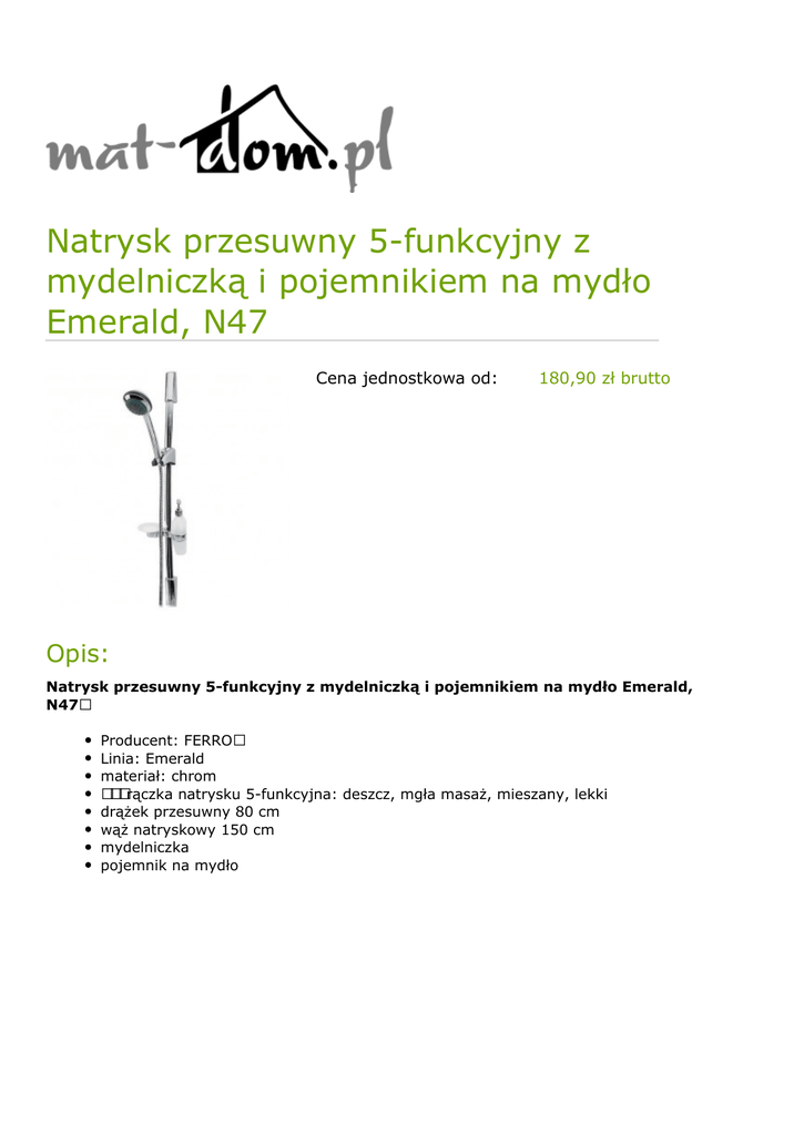 Natrysk przesuwny 5-funkcyjny z mydelniczką i - Mat-dom