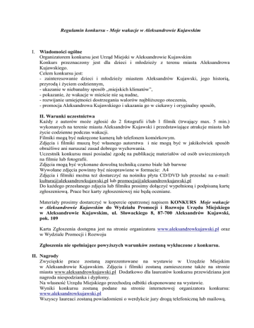 Regulamin konkursu - Moje wakacje w Aleksandrowie Kujawskim I