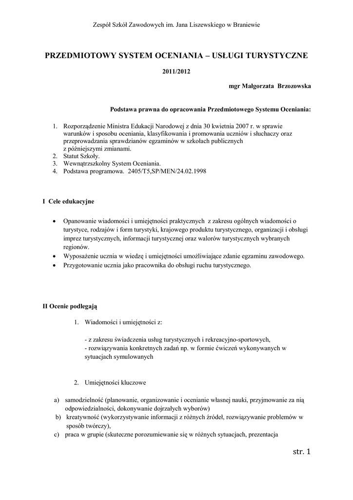 str. 1 PRZEDMIOTOWY SYSTEM OCENIANIA – USŁUGI