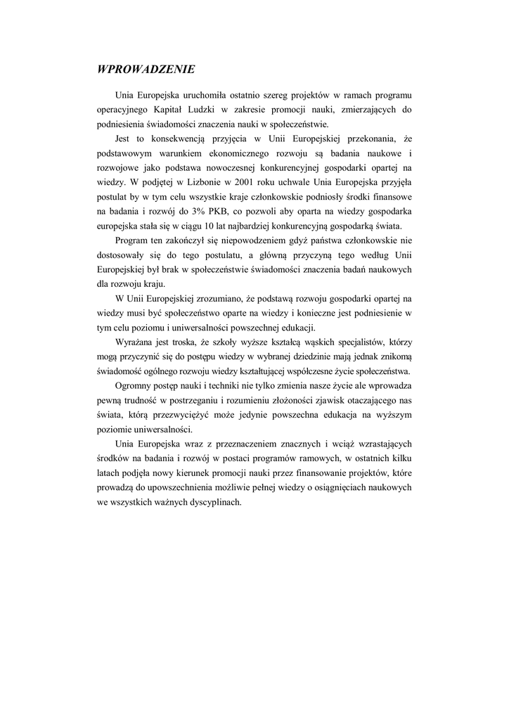 WPROWADZENIE Unia Europejska uruchomiła ostatnio szereg projektów w ramach programu operacyjnego Kapitał Ludzki w zakresie promocji nauki, zmierzających do podniesienia świadomości znaczenia nauki w społeczeństwie. Jest to konsekwencją przyjęcia w Unii Europejskiej przekonania, że podstawowym warunkiem ekonomicznego rozwoju są badania naukowe i rozwojowe jako podstawa nowoczesnej konkurencyjnej gospodarki opartej na wiedzy. W podjętej w Lizbonie w 2001 roku uchwale Unia Europejska przyjęła postulat by w tym celu wszystkie kraje członkowskie podniosły środki finansowe na badania i rozwój do 3% PKB, co pozwoli aby oparta na wiedzy gospodarka europejska stała się w ciągu 10 lat najbardziej konkurencyjną gospodarką świata. Program ten zakończył się niepowodzeniem gdyż państwa członkowskie nie dostosowały się do tego postulatu, a główną przyczyną tego według Unii Europejskiej był brak w społeczeństwie świadomości znaczenia badań naukowych dla rozwoju kraju. W Unii Europejskiej zrozumiano, że podstawą rozwoju gospodarki opartej na wiedzy musi być społeczeństwo oparte na wiedzy i konieczne jest podniesienie w tym celu poziomu i uniwersalności powszechnej edukacji. Wyrażana jest troska, że szkoły wyższe kształcą wąskich specjalistów, którzy mogą przyczynić się do postępu wiedzy w wybranej dziedzinie mają jednak znikomą świadomość ogólnego rozwoju wiedzy kształtującej współczesne życie społeczeństwa. Ogromny postęp nauki i techniki nie tylko zmienia nasze życie ale wprowadza pewną trudność w postrzeganiu i rozumieniu złożoności zjawisk otaczającego nas świata, którą przezwyciężyć może jedynie powszechna edukacja na wyższym poziomie uniwersalności. Unia Europejska wraz z przeznaczeniem znacznych i wciąż wzrastających środków na badania i rozwój w postaci programów ramowych, w ostatnich kilku latach podjęła nowy kierunek promocji nauki przez finansowanie projektów, które prowadzą do upowszechnienia możliwie pełnej wiedzy o osiągnięciach naukowych we wszystkich ważnych dyscyplinach. 6 Wprowadzenie Fundacja im. Wojciecha Świętosławskiego, dla której promocja nauki jest statutowym zakresem działania, podjęła realizację projektu „Polskie i światowe osiągnięcia nauki” finansowanego przez Ministerstwo Nauki i Szkolnictwa Wyższego ze źródeł Unii Europejskiej w postaci opracowań wykonanych przez 42 autorów o wysokich kwalifikacjach, które niezależnie od rozpowszechnienia przez Internet wśród studentów wszystkich szkół wyższych są przedmiotem druku w czterech dziedzinach wiedzy: nauki biologiczne, nauki techniczne, nauki ścisłe i nauki o ziemi. Pragnę gorąco podziękować profesorowi dr hab. Bogdanowi Neyowi, przewodniczącemu Wydziału Nauk o Ziemi PAN za przyjęcie pełnej troski o właściwy dobór dyscyplin i wybór autorów o wysokich kwalifikacjach w zakresie nauk o ziemi. Profesor Michał Kleiber obecnie Prezes Polskiej Akademii Nauk, w latach 2001 do 2005 Minister Nauki i Szkolnictwa Wyższego (w tym od maja 2004 r. Minister Nauki i Informatyzacji) po objęciu swojej funkcji na spotkaniu z Towarzystwem Popierania i Krzewienia Nauki odpowiedział naukowcom, którzy upominali się o zwiększenie środków na naukę, najniższych w Polsce wśród krajów europejskich, że jest osamotniony w Radzie Ministrów, gdyż nikt z jej członków nie jest zainteresowany zwiększeniem finansowania badań i rozwoju. Brak zrozumienia znaczenia nauki dla rozwoju kraju wśród Rady Ministrów wynika z tego braku, wśród członków parlamentu, którzy ją wybrali, a to z kolei z braku tego zrozumienia w społeczeństwie, które parlament wybrało. Unia Europejska postanowiła zwiększyć społeczną świadomość znaczenia nauki rozpowszechniając polskie i światowe osiągnięcia nauki przez Internet wśród wszystkich studentów szkół wyższych jako dla członków przyszłej polskiej inteligencji zachowując wersję drukowaną dla bibliotek szkół wyższych dla personelu dydaktycznego uczelni celem zwiększenia uniwersalności wykształcenia oraz dla wybranych grup społecznych mających bezpośredni wpływ na polską politykę naukową. Obecnie wprawdzie finansowanie badań i rozwoju uległo pewnej poprawie jednak brak jest nadal społecznej świadomości znaczenia nauki, które pozwoliłoby budować gospodarkę opartą na wiedzy. Przewodniczący Zarządu Fundacji im. Wojciecha Świętosławskiego Profesor Andrzej Bylicki