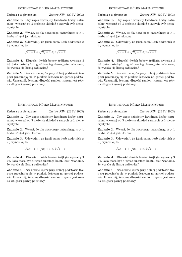 Internetowe Kółko Matematyczne Zadania dla gimnazjum Zestaw