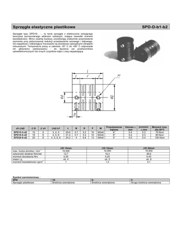 6SU] JáDHODVW\F]QHSODVWLNRZH63''EE 6SU] JáD W\SX 63' WR WDQLH VSU] JáD ] HOHNWU\F]QLH L]ROXMFHJR WZRU]\ZD Z]PDFQLDQHJR ZáyNQHP V]NODQ\P PDMFH QLHZLHONL PRPHQW EH]ZáDGQRFL 0LPR ]ZDUWHM EXGRZ\ XPR*OLZLDM ]QDNRPLWH SU]HQLHVLHQLH PRPHQWX SU]\ MHGQRF]HVQHM UHGXNFML SU]HVWDZLHQLD RVLRZHJR L NWRZHJR 2QDS GRZDLRGELHUDMFDPRFRZDQHVGRFLVNRZRVSHFMDOQ\PLZNU WDPL LPEXVRZ\PL7HPSHUDWXUDSUDF\Z]DNUHVLH&GR&RGSRZLDGD LFK JáyZQHPX ]DVWRVRZDQLX GR áF]HQLD RVL SU]HWZRUQLNyZ RSWRHOHNWURQLF]Q\FKOXELQQ\FKF]XMQLNyZNWD]RVLQDS G]DMF GG ' G GK / % ( ) 63'G 63'G 63'G PD[OLF]EDREURWyZPLQ V]W\ZQRüVNU WQD1PUDG PRPHQWGRFLVNDQLD1P PDVDJ PRPHQWEH]ZáDGQRFLJFP 6\PERO]DPyZLHQLRZ\ 63' 6SU] JáRSODVWLNRZH 'PP RN UHGQLFD]HZQ WU]QD 3U]HVWDZLHQLH NWRZH 0[ 0[ 0[ 0 'PP RN UHGQLFDZHZQ WU]QD 2VLRZHr SURPLH rPP PP 0RPHQWPD[ GOD& 1FP 1FP 1FP 'PP RN 'UXJDUHGQLFDZHZQ WU]QD