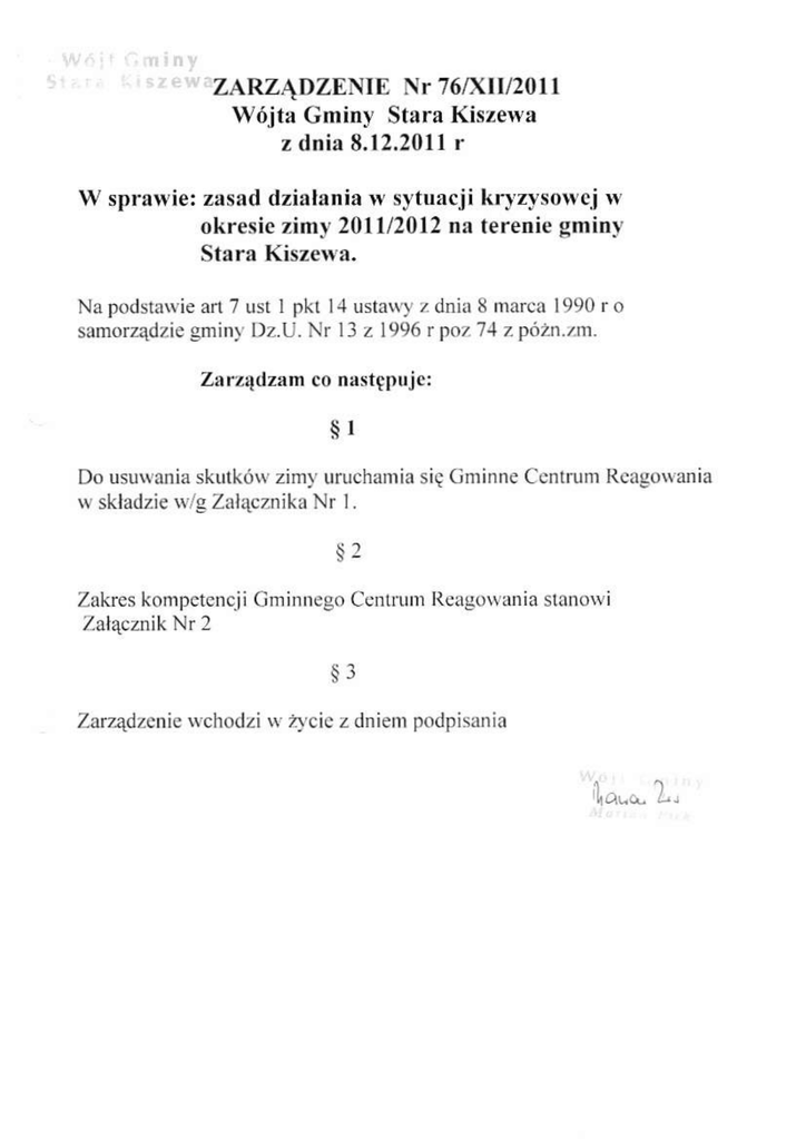 Zarządzenie wchodzi\Y Ź}cic z dniem podpisania