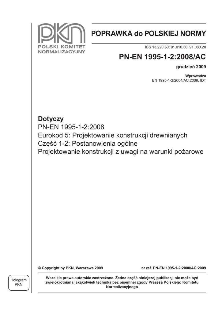 POPRAWKA do POLSKIEJ NORMY PN-EN 1995-1-2