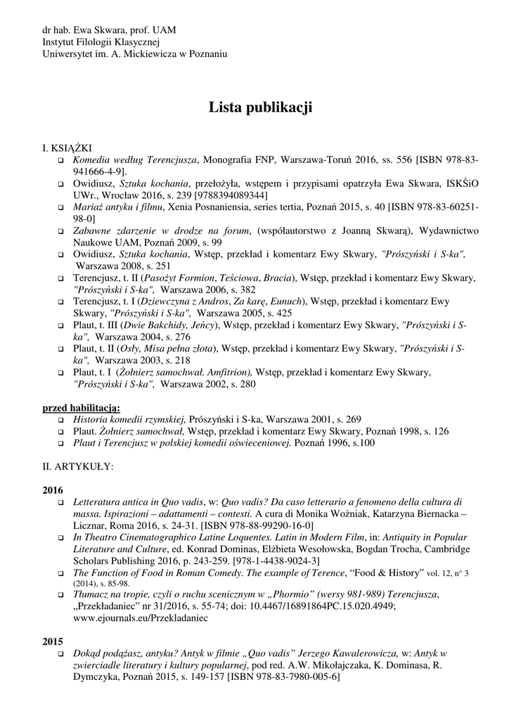 E.Skwara, publikacje - Instytut Filologii Klasycznej