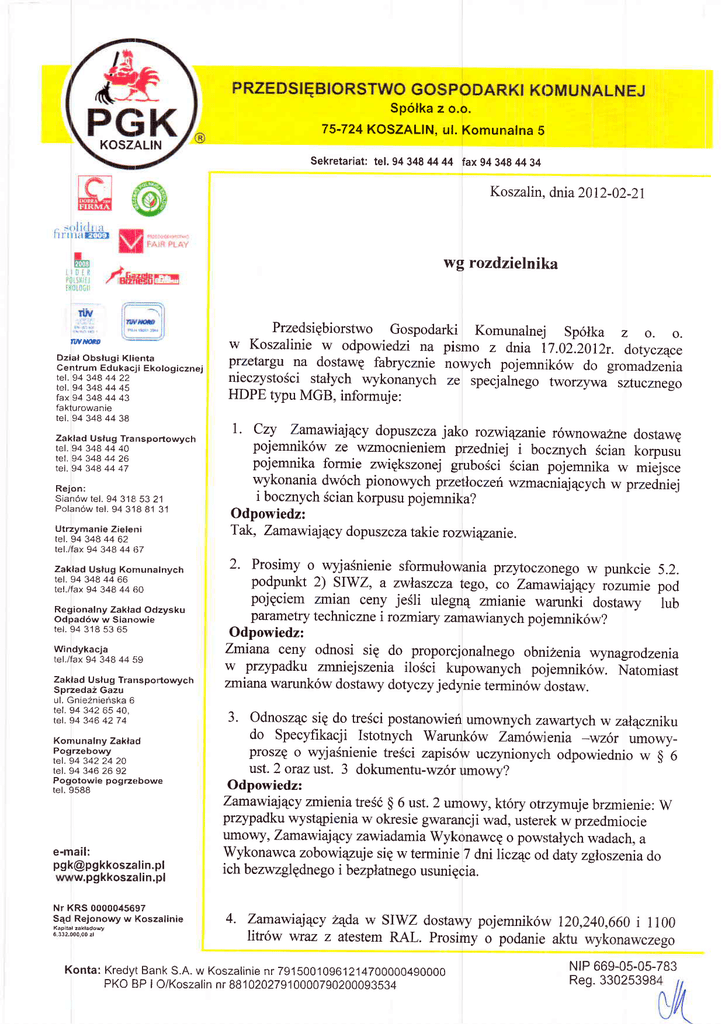 Przedsigbiorstwo Gospodarki Komunalnej Sp6lka z o. o.