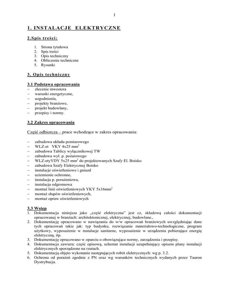 zał. nr 14 Opis instalacje elektryczne