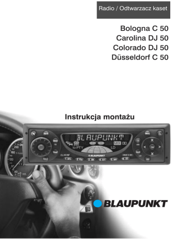 Radio / Odtwarzacz kaset Bologna C 50 Carolina DJ 50 Colorado DJ 50 Düsseldorf C 50 Instrukcja monta¿u INSTRUKCJA MONTA˚U PL ! Zalecenia dotyczàce bezpieczeƒstwa W czasie monta˝u i pod∏àczania prosimy Paƒstwa o przestrzeganie niniejszych zaleceƒ dotyczàcych bezpieczeƒstwa. ➮ Zdjàç przewód minusa z akumulatora! Prosimy uwzgl´dniç i przestrzegaç w tym zakresie zalecenia producenta pojazdu. ➮ Przy wierceniu otworów nale˝y zwracaç uwag´, aby nie uszkodziç elementów samochodu. ➮ Przekrój przewodu zasilania, dla plusa i minusa, nie mo˝e byç mniejszy od 1,5 mm2. ➮ B∏´dy w pod∏àczeniu mogà wprowadziç zak∏ócenia do systemu elektroniki pojazdu lub do radioodtwarzacza. ➮ Nie nale˝y pod∏àczaç do radioodtwarzacza z∏àczy wtykowych od strony pojazdu! ➮ Przewody niezb´dne do pod∏àczenia radioodtwarzacza w Paƒstwa samochodzie, sà do otrzymania w fachowej sieci handlowej autoryzowanej przez firm´ BLAUPUNKT. 25 INSTRUKCJA MONTA˚U Dostarczone razem z radioodtwarzaczem elementy do pod∏àczenia oraz monta˝u 1. ! B A D E C G 112 2V V F 2. D C 182 165 53 1-20 A 26 INSTRUKCJA MONTA˚U 4. A 3. E F Antenne Antena 7 607 621 Przewody niezb´dne do pod∏àczenia radioodtwarzacza w Paƒstwa samochodzie, sà do otrzymania w fachowej sieci handlowej autoryzowanej przez firm´ BLAUPUNKT. 5. 8 601 002 8 601910 910 002 1 2 B 1 2 6. 1122 V V 27 INSTRUKCJA MONTA˚U 7 C-1 C-2 1 C C 7 4 3 5 2 10 9 6 8 C-3 15 1 14 BB 1 3 5 7 2 4 6 8 A 1 3 5 7 2 4 6 8 A 16 13 12 19 18 17 20 A B 1 nc 1 Speaker out RR+ 2 Telefon Mute 2 Speaker out RR- 3 nc 3 Speaker out RF+ 4 Permanent +12V 4 Speaker out RF- 5 Aut. antenna 5 Speaker out LF+ 6 Illumination 6 Speaker out LF- 7 Kl.15/Ignition 7 Speaker out LR+ 8 Ground 8 Speaker out LR- 1 wolny 1 WyjÊcie g∏oÊnikowe PR+ 2 wyciszanie telefonem 2 WyjÊcie g∏oÊnikowe PR- 3 wolny 3 WyjÊcie g∏oÊnikowe PF+ 4 akumulator +12V 4 WyjÊcie g∏oÊnikowe PF- 5 automatyczna antena 5 WyjÊcie g∏oÊnikowe LF+ A 6 oÊwietlenie 6 WyjÊcie g∏oÊnikowe LF- 7 zacisk 15/zap∏on 7 WyjÊcie g∏oÊnikowe LR+ 8 masa 8 WyjÊcie g∏oÊnikowe LR- P – prawy L – lewy np. PR – prawy / ty∏29 28 B R – ty∏ F – przód INSTRUKCJA MONTA˚U 7b C C1 C2 C3 1 Line Out LR 7 nc 13 Bus – In 2 Line Out RR 8 nc 14 Bus – Out 3 Line Out Masse / Ground 9 nc 15 Permanent +12V 4 Line Out LF 10 FB +12V / RC + 12V 16 +12V 5 Line Out RF 11 Fernbedienung / Remote Control 17 Bus – Masse / GND 6 + 12V Amplifier 12 FB – Masse / RC – GND 18 AF – Masse / GND Equlizer Korektor Amplifier Wzmacniacz 19 Line In – L 20 Line In – R Remote Control Zdalne sterowanie CD – Changer Zmieniacz p∏yt CD C C1 C2 C3 1 wyjÊcie liniowe LR 7 wolny 13 2 wyjÊcie liniowe PR 8 wolny 14 Bus – wyjÊcie 3 linia wyj. masa 9 wolny 15 akumulator+12V 4 linia wyjÊcie LF 10 prze∏àczane +12V zdalne sterow. 16 prze∏àczane +12V 5 linia wyjÊcie PF 11 zdalne sterowanie 17 Bus – masa 6 prze∏àcz.+12V wzmacniacz 12 masa – zdalne sterowanie 18 audio – masa P – prawy L – lewy R – ty∏ F – przód Bus – wejÊcie 19 linia wejÊcie – L 20 linia wyjÊcie – P np. PR – prawy / ty∏ LF – lewy / przód 29 INSTRUKCJA MONTA˚U 8. 12V (max. 150 mA) Relais RR R F LF Ohm 44 Ohm + + + + - LR Ohm 44 Ohm Ohm 44 Ohm 44 Ohm Ohm 7 607 621 222 10A Kl. 15 +12V 1 35 2 7 8 4 6 Telefon Mute (low) 8 604 492 320 12V Telefon Mute (low) – wyciszanie telefonem (poziom niski) Zastrzegamy sobie mo˝liwoÊç wprowadzania zmian! 30