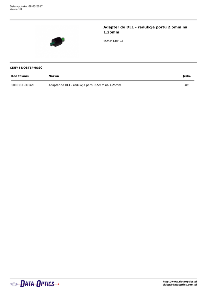 Data wydruku: 08-03-2017 strona 1/1 Adapter do DL1 - redukcja portu 2.5mm na 1.25mm 1003111-DL1ad CENY I DOSTĘPNOŚĆ Kod towaru Nazwa 1003111-DL1ad Adapter do DL1 - redukcja portu 2.5mm na 1.25mm Jedn. szt. http://www.dataoptics.pl [email protected] Powered by TCPDF (www.tcpdf.org)