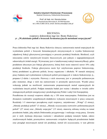 Recenzja doktorska II - Wydział Technologii Chemicznej