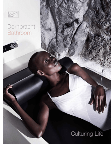 Bathroom Эстетика. Здоровье. Образованность. Близость. В эпоху цифровых технологий наши требования к оснащению таких помещений, как ванная комната, спа и кухня изменяются. Estetyka. Zdrowie. Inteligencja. Intymność. W dobie digitalizacji nasze wymagania w przestrzeniach życiowych takich, jak łazienka, strefa spa, czy kuchnia podlegają zmianom. Culturing Life Prevention Pleasure AESTHETICS Digitalisation rITUALS Intimacy Estetika. Zdraví. Inteligence. Intimita. V době digitalizace se mění i naše požadavky na vybavení koupelny, lázně a kuchyně. Andreas Dornbracht HEALTH Dornbracht Culture Projects Statements 002.98, Inez van Lamsweerde and Vinoodh Matadin, Cheap Chic, 1998 Performance 1 Mark Jarecke, Dendron, Milan, 2005 Statements 1, Nick Knight, Hamburg, 1997 Dornbracht Edges, Mike Meiré, The Farm Project, 2006 Statements 7 Thomas Rentmeister, Santo*, Venice, 2003 Statements (six) Rita Ackermann, Kissed, New York, 2001 Statements IV, To Rococo Rot, Yves Netzhammer, Mouse on Mars, Opiate, Berlin, 2000 Statements Performances Installations Conversations Sponsorships Edges Statements (six) Mark Borthwick, New York, 2001 Dornbracht Edges, Mike Meiré, Global Street Food, Weil am Rhein, 2009 Dornbracht Edges, Matali Crasset, Update / 3 Spaces in one, Cologne, 2002 dornbracht.com /cultureprojects Dornbracht Sponsorships, Into Me / Out of Me, curated by Klaus Biesenbach, Berlin, New York, Rome, 2006 Statements IV, Yves Netzhammer, Berlin, 2000 Statements 7 Steven Gontarski, Monument to Doubt, Venice, 2003 Performance 2 Dave Nuss, Wood on Wood, Berlin, 2006 Dornbracht Edges David Adjaye, Landscape of bathing, Cologne, 2001 Statements 7 Marc Quinn, The Overwhelming World of Desire, Venice, 2003 Dornbracht Edges, Noises for Ritual Architecture, curated by Mike Meiré, Milan, 2008 Dornbracht Bathroom Contents 4 8 16 22 28 Transforming Water Sensory Sky ATT Horizontal Shower ATT Vertical Shower ATT Foot Bath ATT 70 74 90 100 108 116 34 Performing Water 122 130 136 50 58 Smart Water My bathroom 144 150 156 164 170 174 Product Design MEM Deque Symetrics Selv Gentle IMO LULU Supernova Elemental Spa Tara.Logic Tara. Meta.02 eMote / eTech Madison / Madison Flair 2 208 210 214 Culture Projects One on One Dornbracht Conversations 4 Public Intimacy 3 178 Ritual Architecture 180 The architectural amplifier 194 202 The The The The The 204 Floor Plans 196 198 200 Temple Gym Origin Lagoon Landscape Источник духовной силы, энергии и очищение внутреннего мира. Как вода влияет на наше самочувствие? Źródło duchowej siły, dawca energii, katalizator ducha. W jaki sposób woda wpływa na nasze samopoczucie? Zdroj duchovní síly, zdroj energie, očištění mysli. Jak ovlivňuje voda naše rozpoložení? 4 5 Transforming Water Transforming Water TRANSFORMING WATER означает преобразовывающее воздействие воды на человека, а AMBIANCE TUNING TECHNIQUE (ATT ) – технологическая возможность реализации заданных сценариев в ванной комнате. Благода ря виртуозному взаимодействию средств архитектуры, дизайна и автоматического регулирования возникают уникальные ощущения, как результат гармоничной совместной игры воды, света и ароматов. RU P L TRANSFORMING WATER oznacza transformujące oddziaływanie wody na ludzi, zaś AMBIANCE TUNING TECHNI QUE (ATT ) to technologie umożliwiające tworzenie scenariuszy w łazience. W mistrzowskim zestawieniu architektury, designu i inteligentnej technologii regulacji powstają unikalne, zmysłowe przeżycia związane z wodą oraz harmonijne choreografie złożone z wody, światła i zapachu. 6 C S TRANSFORMING WATER přináší transformující účinek vody na člověka, AMBIANCE TUNING TECHNIQUE (ATT ) zaručuje technologicky vyspělé scénáře pro vaši koupelnu. Ve virtuózní souhře architektury, designu a inteligentní regulační technologie vznikají jedinečné smyslové zážitky spojené s vodou a harmonické choreografie vody, světla a vůně. 8 Sensory Sky ATT 16Horizontal Shower ATT 22Vertical Shower ATT 28Foot Bath ATT 7 Каков на ощупь туман? Чем пахнет радуга? Как выглядит летний дождь? Jak odczuwa się mgłę? Jaki zapach ma tęcza? Jak wygląda ciepły, letni deszcz? Jaká je mlha na dotek? Jak voní déšť? Jak vypadá teplý letní déšť? 8 9 Transforming Water Sensory Sky ATT Inspired by natural phenomena Sensory Sky ATT 10 R U Ощущение, как под открытым небом. Благодаря технологии SENSORY SKY ATT принятие душа становится необыкновен ным событием, который порадует все ваши чувства. Различные виды дождя, туман, игра света и разнообразные ароматы дополняются комплексными хореографиями, вдохновленными различными погодными явлениями и настроениями природы. Управление осуществляется с помощью цифровых устройств SMART TOOLS от Dornbracht (стр. 50). P L To wrażenie przebywania pod gołym niebem. Dzięki SENSORY SKY ATT prysznic staje się jedynym w swoim rodzaju przeży ciem, stymulującym wszystkie nasze zmysły. Różne strumienie prysznica, parująca mgła, światło i zapachy tworzą kompleksowe choreografie zainspirowane fenomenami pogodowymi i kaprysami natury. Dzięki systemom el