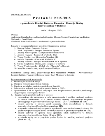 Protokół Nr 15/2015 z posiedzenia Komisji Budżetu, Finansów i