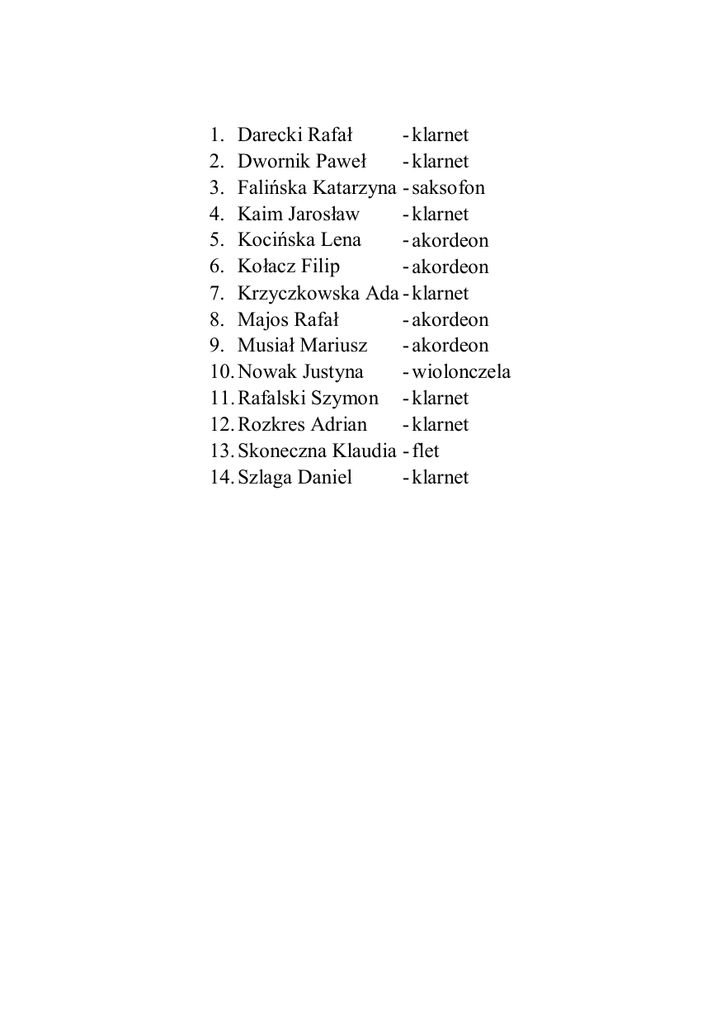 1. Darecki Rafał -klarnet 2. Dwornik Paweł