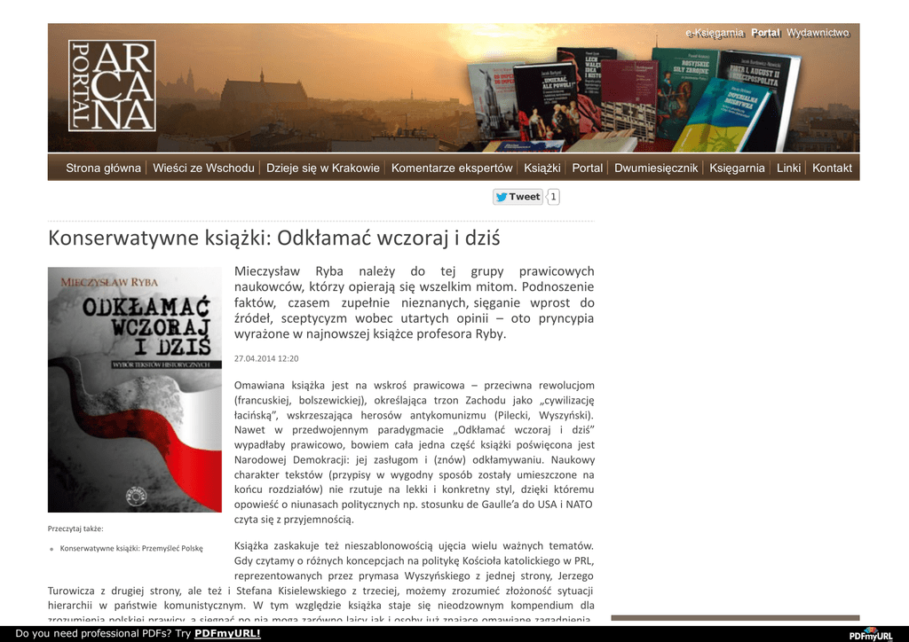 e-Księgarnia e-Księgarnia Portal Portal Wydawnictwo Wydawnictwo Strona główna Wieści ze Wschodu Dzieje się w Krakowie Komentarze ekspertów Książki Portal Dwumiesięcznik Tweet 1 Konserwatywne książki: Odkłamać wczoraj i dziś Mieczysław Ryba należy do tej grupy prawicowych naukowców, którzy opierają się wszelkim mitom. Podnoszenie faktów, czasem zupełnie nieznanych, sięganie wprost do źródeł, sceptycyzm wobec utartych opinii – oto pryncypia wyrażone w najnowszej książce profesora Ryby. 27.04.2014 12:20 Przeczytaj także: Omawiana książka jest na wskroś prawicowa – przeciwna rewolucjom (francuskiej, bolszewickiej), określająca trzon Zachodu jako „cywilizację łacińską”, wskrzeszająca herosów antykomunizmu (Pilecki, Wyszyński). Nawet w przedwojennym paradygmacie „Odkłamać wczoraj i dziś” wypadłaby prawicowo, bowiem cała jedna część książki poświęcona jest Narodowej Demokracji: jej zasługom i (znów) odkłamywaniu. Naukowy charakter tekstów (przypisy w wygodny sposób zostały umieszczone na końcu rozdziałów) nie rzutuje na lekki i konkretny styl, dzięki któremu opowieść o niunasach politycznych np. stosunku de Gaulle’a do USA i NATO czyta się z przyjemnością. Książka zaskakuje też nieszablonowością ujęcia wielu ważnych tematów. Gdy czytamy o różnych koncepcjach na politykę Kościoła katolickiego w PRL, reprezentowanych przez prymasa Wyszyńskiego z jednej strony, Jerzego Turowicza z drugiej strony, ale też i Stefana Kisielewskiego z trzeciej, możemy zrozumieć złożoność sytuacji hierarchii w państwie komunistycznym. W tym względzie książka staje się nieodzownym kompendium dla zrozumienia polskiej prawicy, a sięgnąć po nią mogą zarówno laicy jak i osoby już znające omawiane zagadnienia. Konserwatywne książki: Przemyśleć Polskę Do you need professional PDFs? Try PDFmyURL! Księgarnia Linki Kontakt zrozumienia polskiej prawicy, a sięgnąć po nią mogą zarówno laicy jak i osoby już znające omawiane zagadnienia. Ostro też prezentuje się na kartach tego wydania kwes a granicy cywilizacji Wschodu i Zachodu – lecz nie tylko o granicę geograficzną tu chodzi, lecz bardziej o duchową – gdy Autor wspomina o inwazji mul kulturalizmu (która przecież idzie z Zachodu), czy porówbuje nazizm i bolszewizm (Zachód i Wschód, a jednak nie do końca…). Prof. Ryba w jednym z artykułów pyta: dlaczego Polska, mogąca się poszczycić tak wielkimi wolnościowymi tradycjami, miała i ma tak negatywny obraz w państwach ościennych? I właśnie kolejne rozdziały książki wskazują interesy środowisk liberalnych i lewackich, którym Polska i jej katolicyzm stoją na przeszkodzie w realizacji inżynierii społecznej kolejnych dekad. WYSZUKIWARKA Szukaj REKLAMA Książka Prohibity wpisuje się w całą serię nonkonformistycznych tomów wydanych przez to wydawnictwo – czytając „Odkłamać wczoraj i dziś”, czujemy, że walka nadal trwa, a sztandar konserwatyzmu nadal dumnie powiewa nad naszą stroną tej cywilizacyjnej walki… Łukasz Wiater Mieczysław Ryba, Odkłamać wczoraj i dziś. Wybór tekstów historycznych, Warszawa 2014, wydawnictwo Prohobita, ss. 264. OSTATNIE WIADOMOŚCI Z TEGO DZIAŁU Konserwatywne książki: Kondotierzy FACEBOOK Wydawnictwo ARCANA Like Konserwatywne książki: Przemyśleć Polskę Komentarze (0) Do you need professional PDFs? Try PDFmyURL! 4,241 people like Wydawnictwo ARCANA. Facebook social plugin Twój nick: DODAJ Kod z obrazka: Redakcja nie ponosi odpowiedzialności za treść komentarzy. Wszystkie opinie są własnością piszących. Ponadto redakcja zastrzega sobie prawo do kasowania komentarzy wulgarnych lub nawołujących do nienawiści. © Portal ARCANA 2013. Wszelkie prawa zastrzeżone. Wszystkie teksty zamieszczone na stronie są własnością Portalu ARCANA lub też autorów, którzy podpisani są pod artykułem. Redakcja Portalu ARCANA zgadza się na przedruk zamieszczonych materiałów tylko pod warunkiem zamieszczenia informacji o źródle. Nowa odsłona Portalu ARCANA powstała dzięki wsparciu Fundacji Banku Zachodniego WBK. Do you need professional PDFs? Try PDFmyURL!